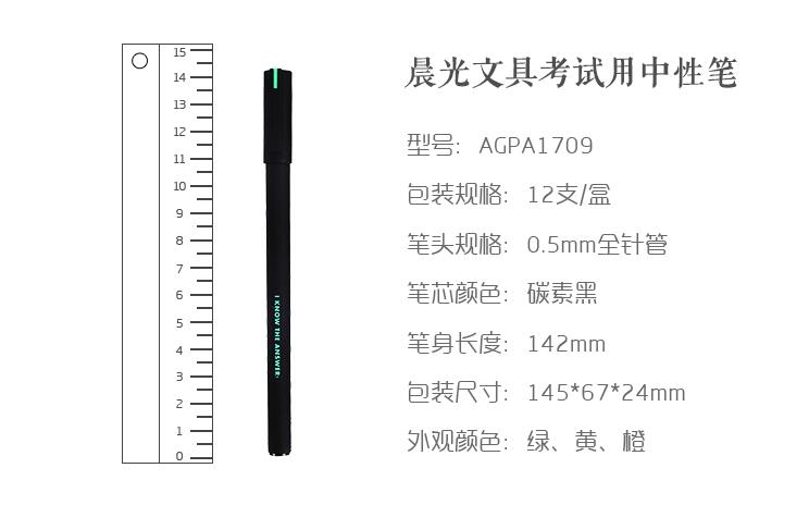 晨光文具中性筆0.5 6支學生考試專用筆碳素黑簽字筆全針管水筆芯A1709
