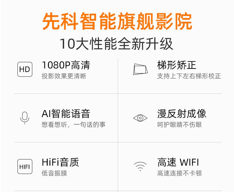 先科4k超高清投影儀家用臥室手機一體機投墻1080p智能電視宿舍學(xué)生小型便攜迷你投屏家庭影院辦公培訓(xùn)投影機
